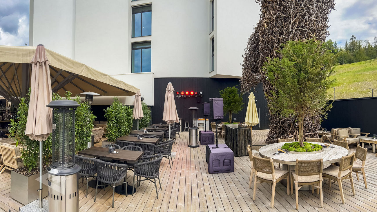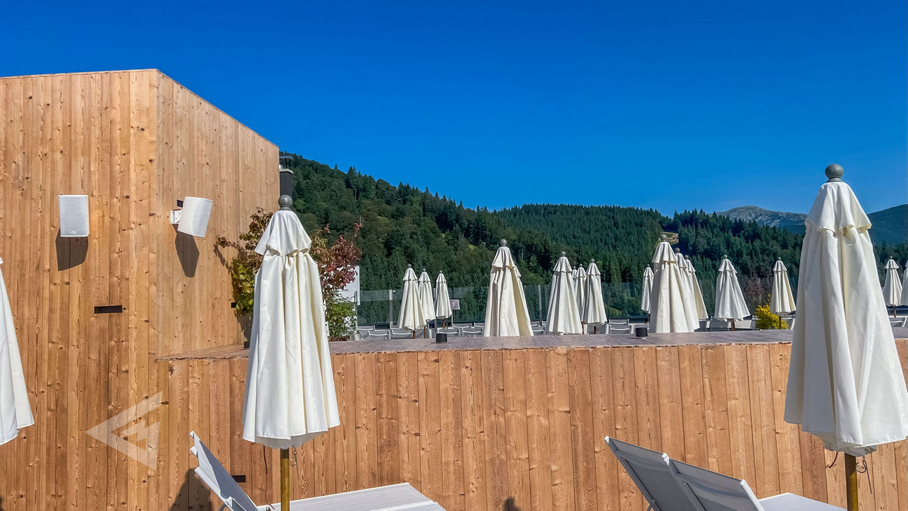 In total, 130 MAG Audio loudspeakers were installed throughout Mountain Residence. The core of the system is built on the AIR-C series, providing seamless background coverage across every corner of the resort — from lobbies and restaurants to spa zones and outdoor terraces. To elevate nightlife and special events, a dedicated DJ setup was deployed, combining powerful MAG Audio Sting point-source systems with thunderous dual-18" Sub-28 subwoofers in the open-air bar.
