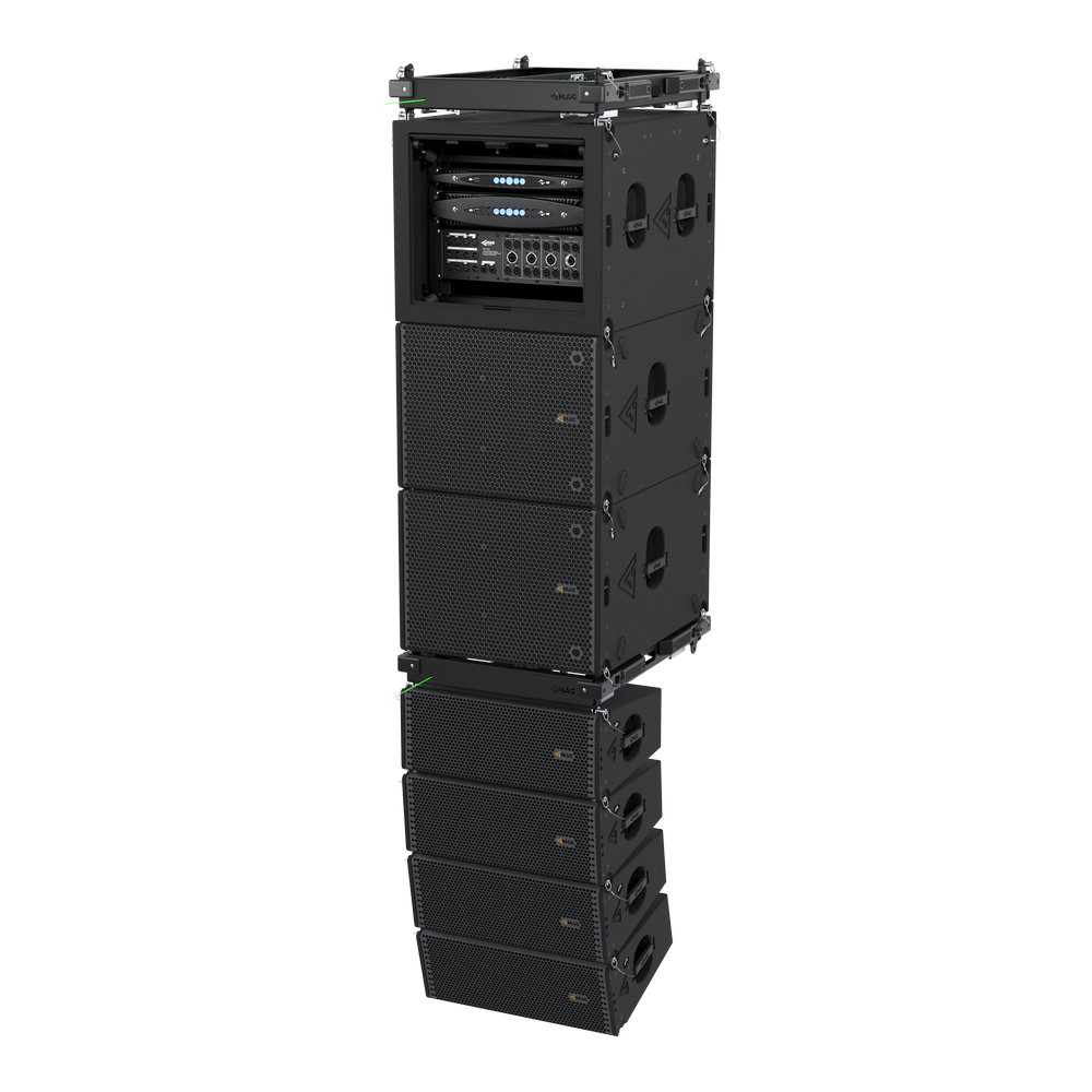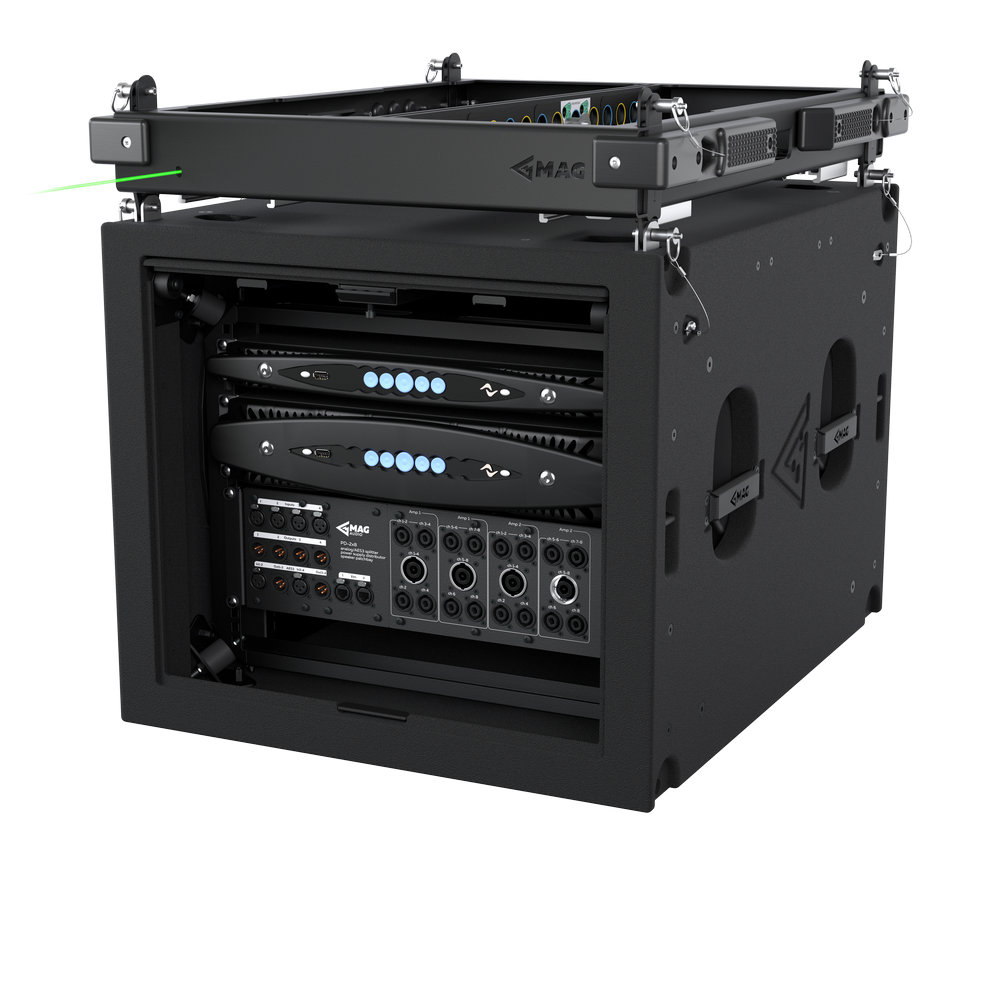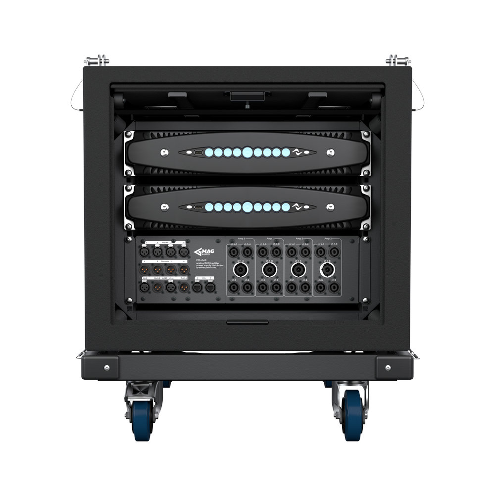 Стійка з підвісним посиленням для систем WASP, 8U, 16 вихідних каналів, 3000 Вт при 4 Ом/5200 Вт при 2 Ом на канал, розподільник потужності і сигналу, мережевий вхід CEE 32