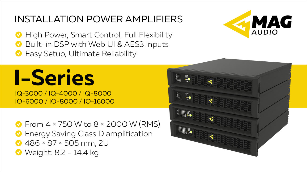 MAG Audio представляє лінійку професійних інсталяційних підсилювачів I-Series з DSP, Web UI та інтерфейсом AES3. Вони поєднують гнучкість і продуктивність та включають шість моделей, що дозволяє обрати оптимальне рішення для будь-якої системи: